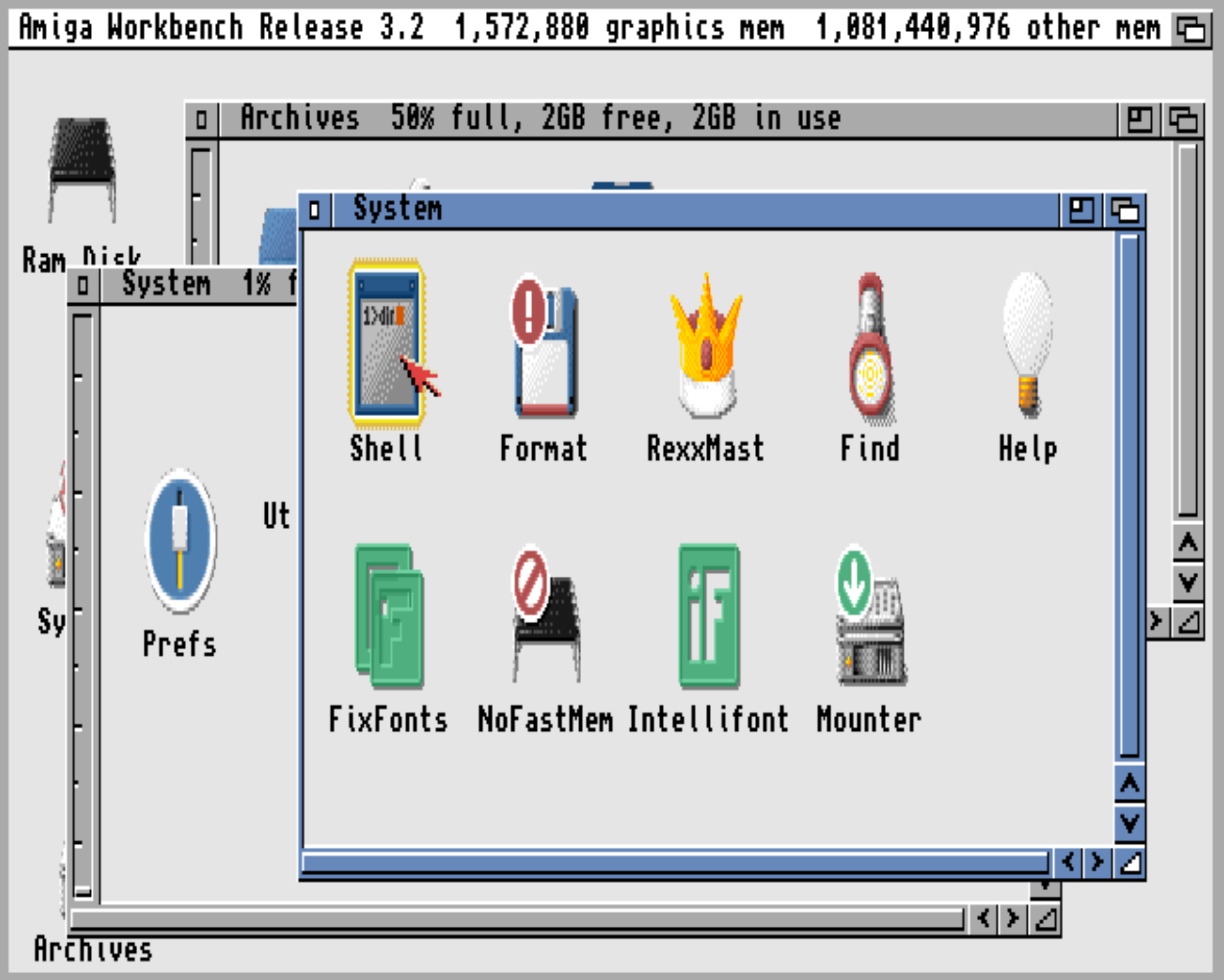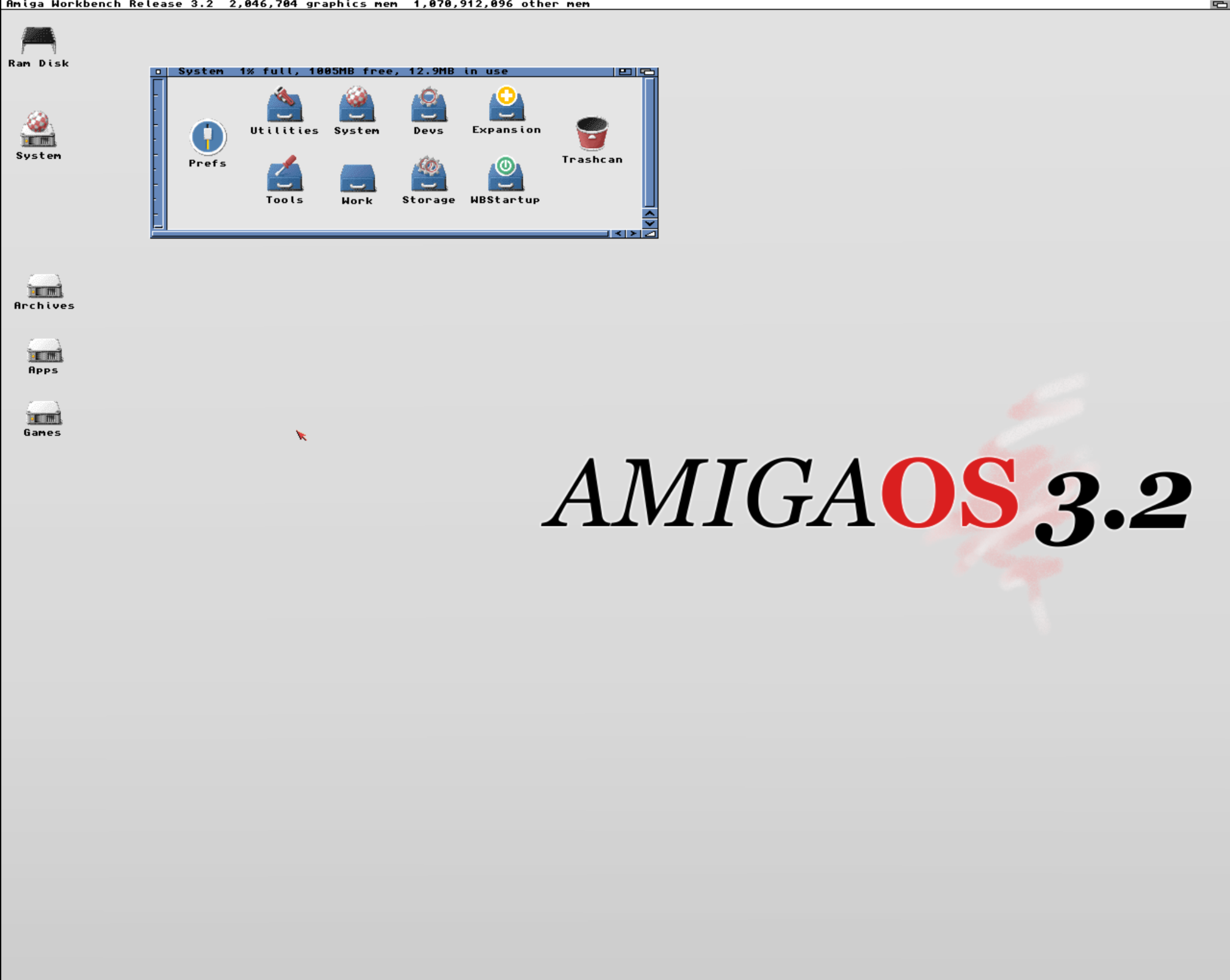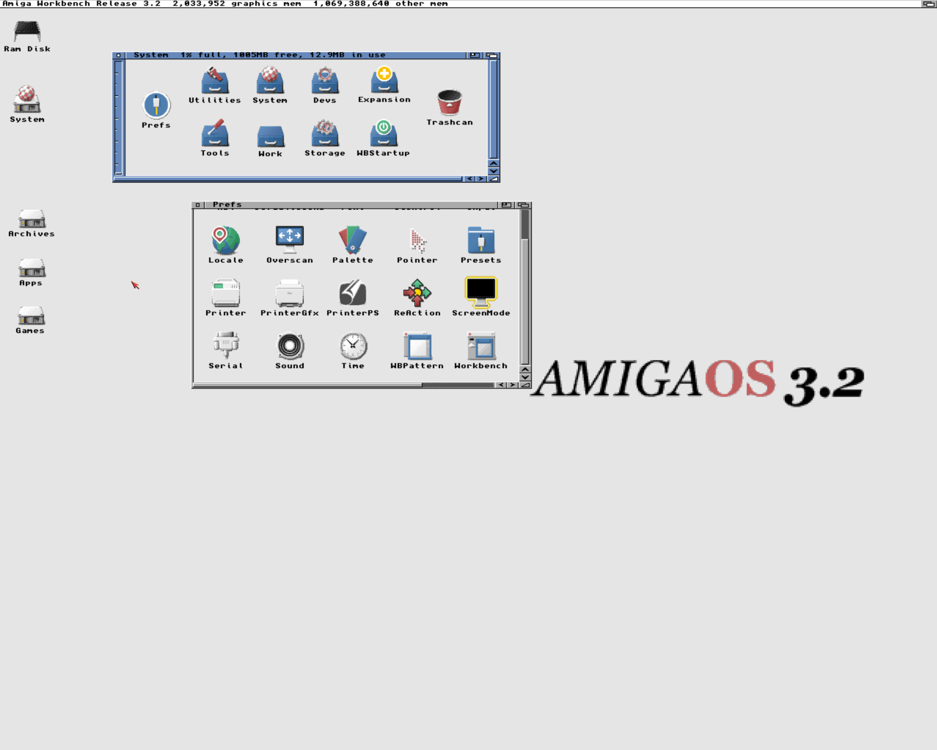 Still based off the 1994 3.1 source code, AmigaOS 3.2 runs on all the vintage hardware and retains the look and feel of the original OS (for better or worse!).