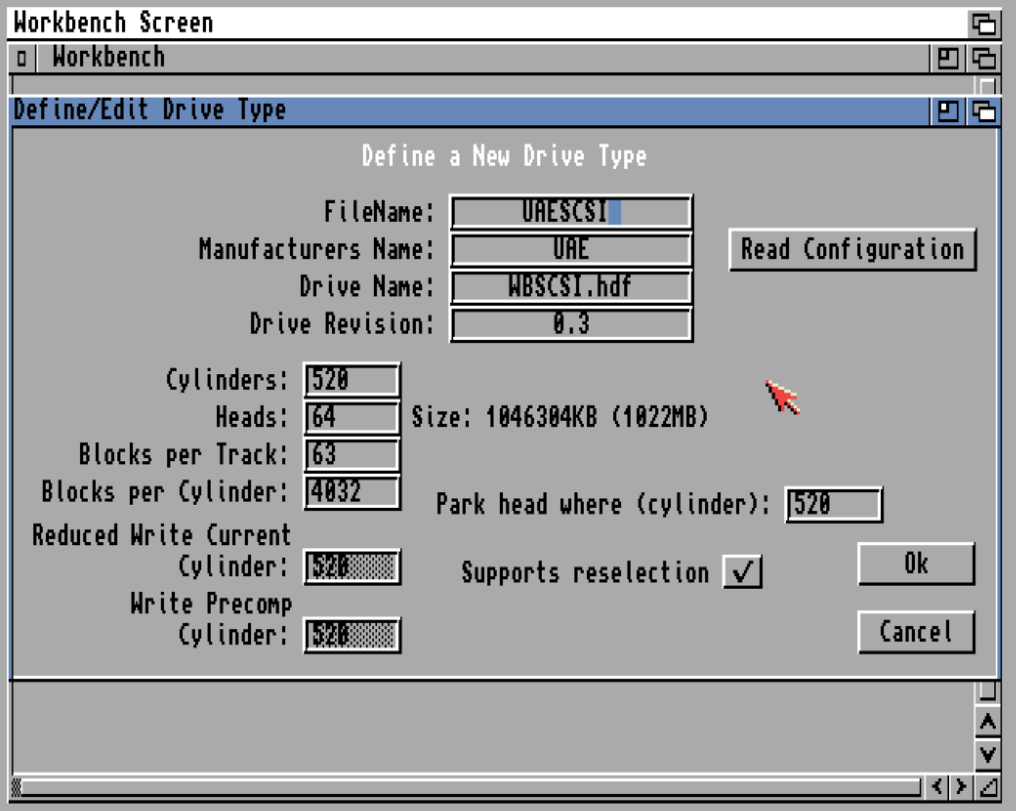 Give it a name and a size. Really doesn’t need to be large. The biggest Amiga HDD’s back in the 90’s were in the hundreds of megabytes.